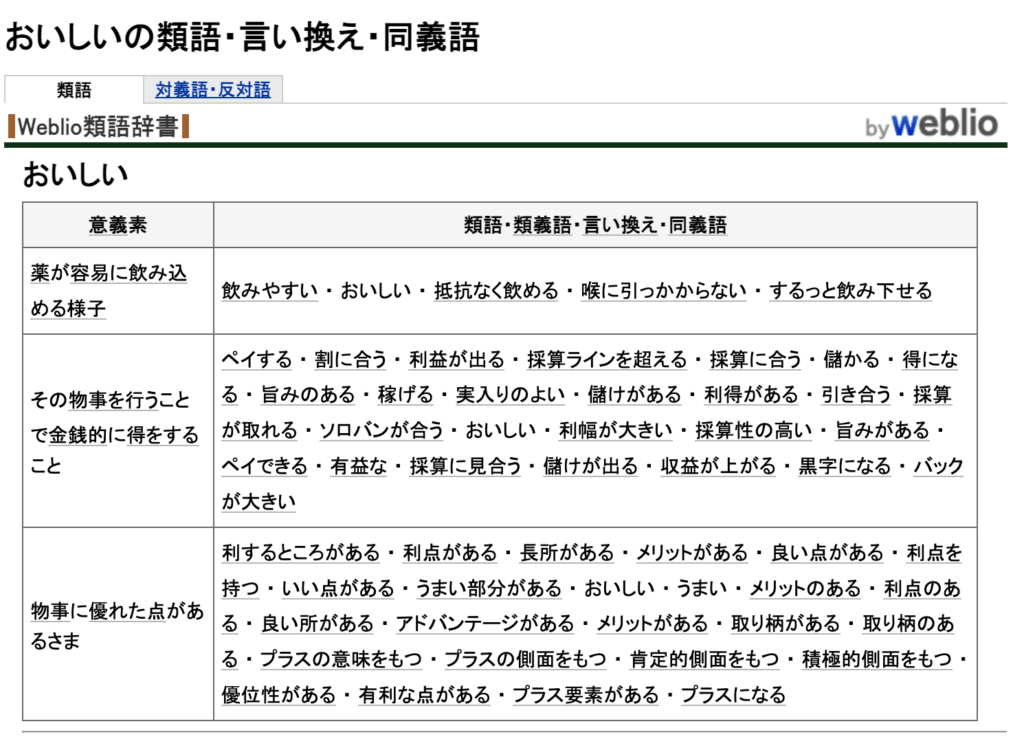 その類語を調べることで、別のキーワード候補を探し出すことができます。