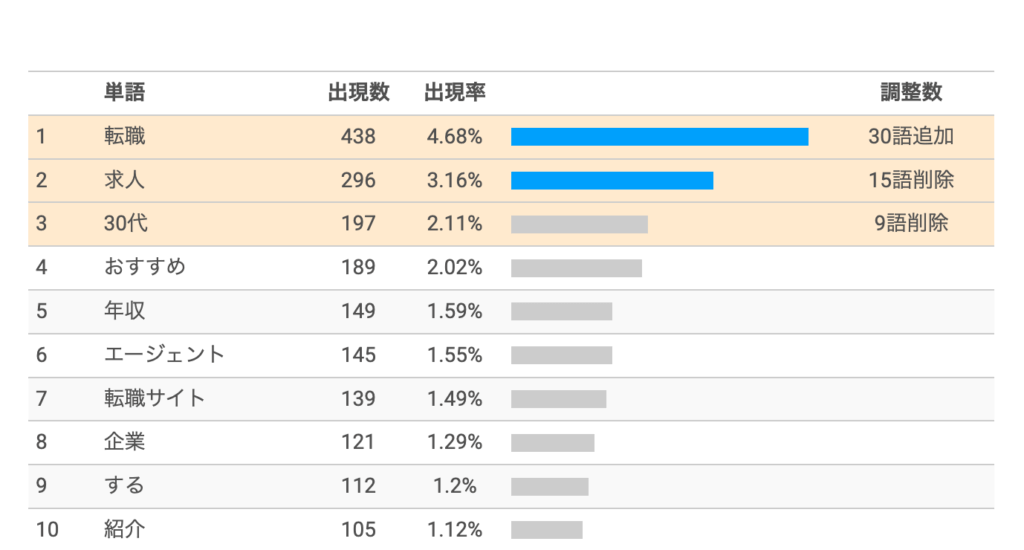 記事の中にキーワードがどれくらい出現するかを